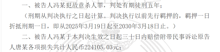 公开的判决书显示,被告人冯某生于1966年,因2024年9月在成都市武侯区某医院接受被害人唐某主治的膝部手术,治疗后冯某自认为恢复不佳,遂产生杀害唐某的想法。